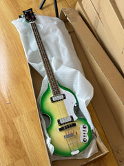 4-String Violin-Shaped Electric Bass with Gloss Lime Green-Cream Sunburst Finish (HY-2512)