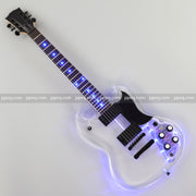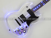 SG Style Transparent Acrylic-Bodied Electric Guitar with Blue LED Lights (12336)