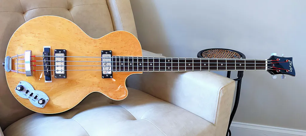 4-String Semi-Hollow Body Electric Bass Guitar with Birdseye Maple Veneer Top (HY-2506)